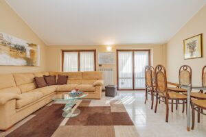 Internamente, l’appartamento si compone di due locali ben distribuiti: un accogliente zona giorno molto ampia, una cucina abitabile separata e funzionale, una confortevole camera da letto e un bagno finestrato con doccia . Le finiture interne sono di qualità signorile, conferendo un tocco di particolare eleganza all’ambiente.