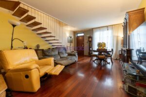 L’ingresso si apre su un salone ampio e accogliente, valorizzato dalla presenza di un camino, ideale per rendere l’ambiente ancora più confortevole.