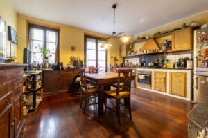 Adiacente troviamo una cucina abitabile spaziosa e funzionale, con accesso diretto ad un piccolo spazio privato riservato.